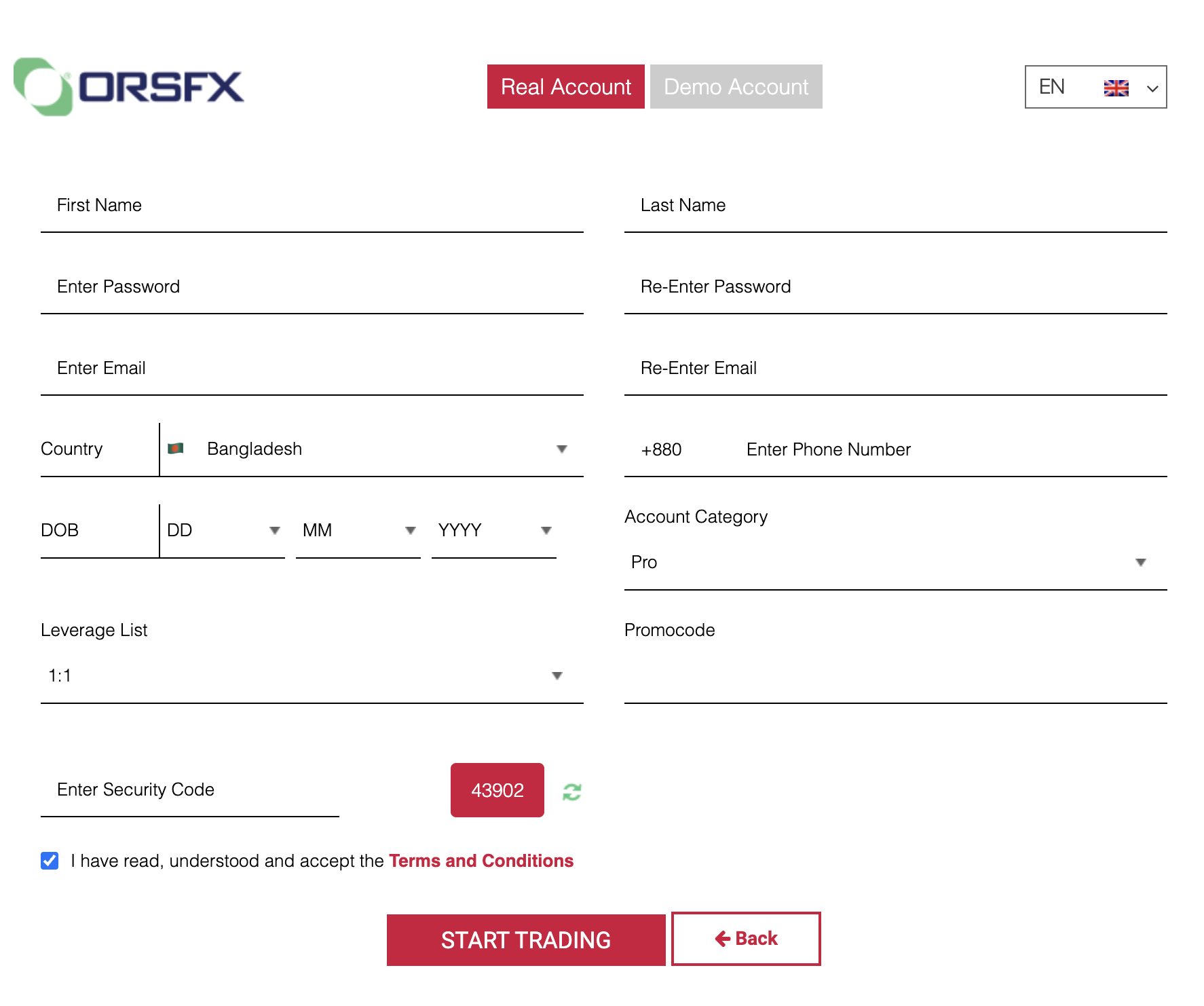 - Visit orsfx.com and click on “Open an Account” or use the provided link to access the account opening.